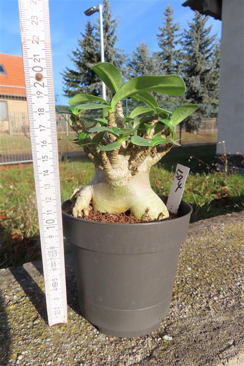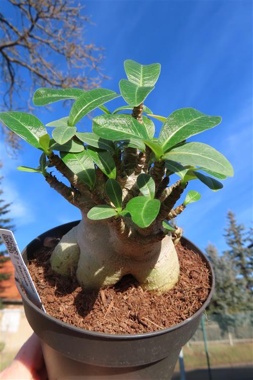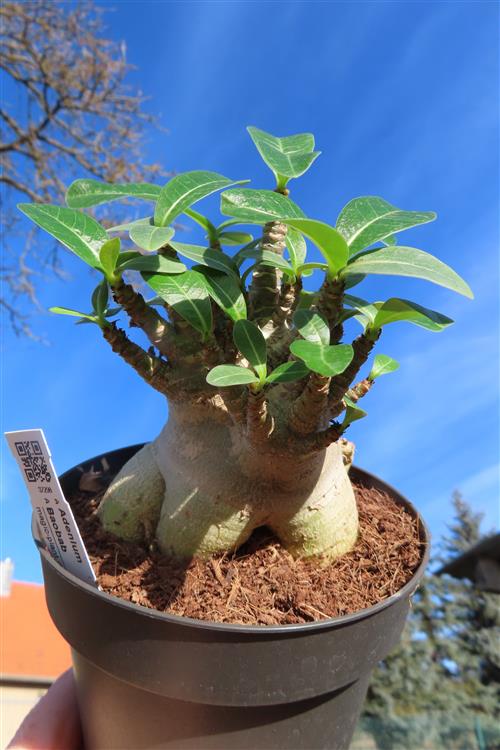 Adenium Baobab ist eine Züchtung der Wüstenrose (Adenium), die mit ihrem verdickten Stamm dem Affenbrotbaum (Baobab) ähnelt. Es handelt sich dabei also nicht um eine eigenständige Art, sondern um eine Zuchtform, die vor allem wegen ihres auffälligen Wuchses geschätzt wird.
