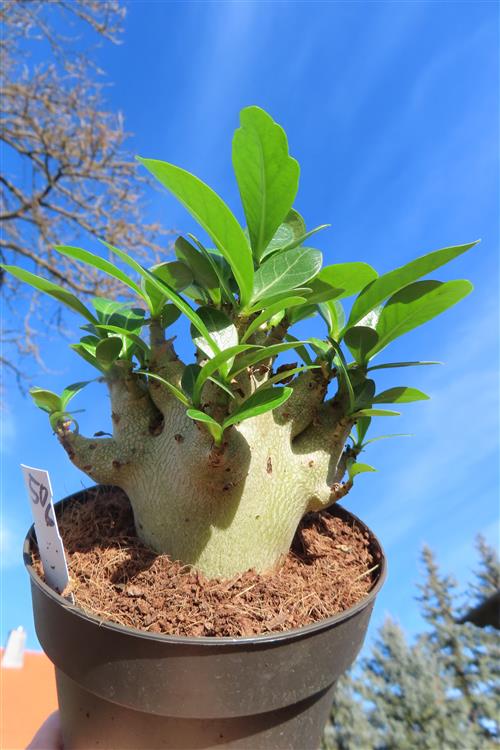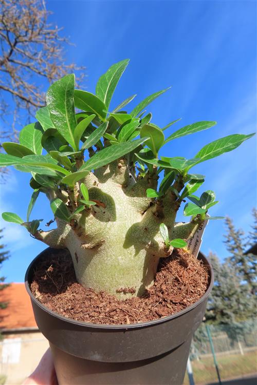 Adenium Baobab ist eine Züchtung der Wüstenrose (Adenium), die mit ihrem verdickten Stamm dem Affenbrotbaum (Baobab) ähnelt. Es handelt sich dabei also nicht um eine eigenständige Art, sondern um eine Zuchtform, die vor allem wegen ihres auffälligen Wuchses geschätzt wird.
