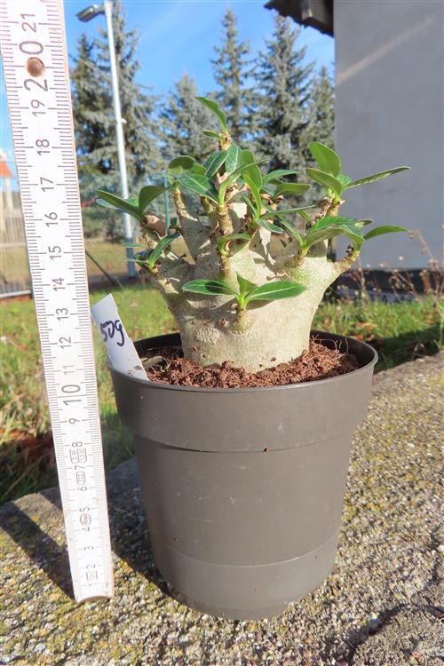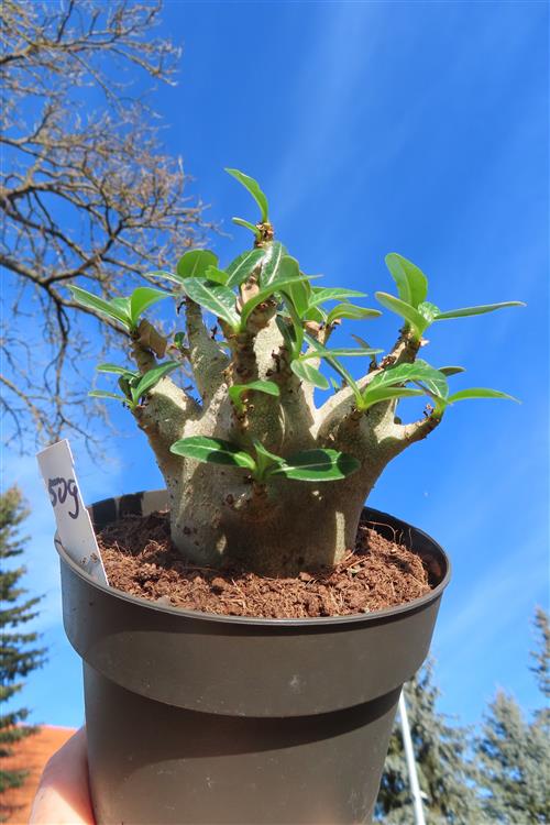 Adenium Baobab ist eine Züchtung der Wüstenrose (Adenium), die mit ihrem verdickten Stamm dem Affenbrotbaum (Baobab) ähnelt. Es handelt sich dabei also nicht um eine eigenständige Art, sondern um eine Zuchtform, die vor allem wegen ihres auffälligen Wuchses geschätzt wird.