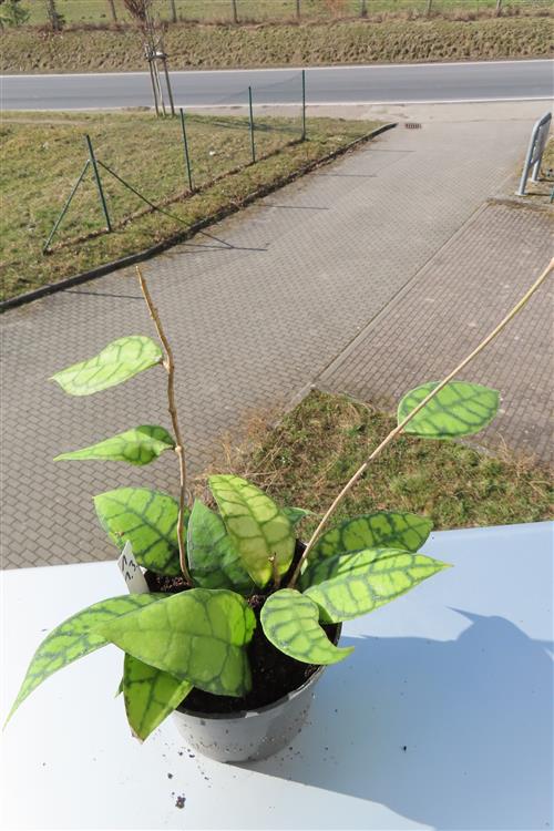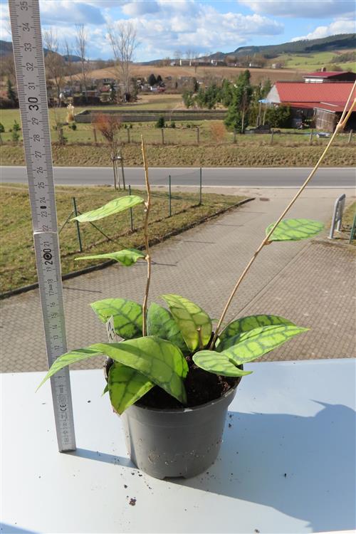 Die Hoya callistophylla Black Cat ist eine außergewöhnliche, epiphytisch wachsende Wachsblume, die sich durch ihre intensiv geäderten Blätter auszeichnet. Sie wird von Sammlern wegen ihrer beeindruckenden Blattzeichnung und der duftenden Blüten geschätzt.