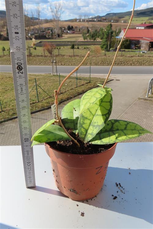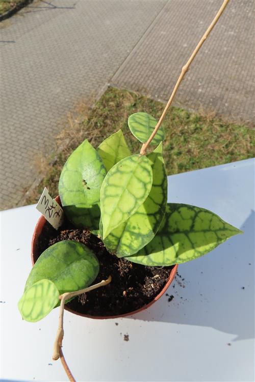 Die Hoya callistophylla Black Cat ist eine außergewöhnliche, epiphytisch wachsende Wachsblume, die sich durch ihre intensiv geäderten Blätter auszeichnet. Sie wird von Sammlern wegen ihrer beeindruckenden Blattzeichnung und der duftenden Blüten geschätzt.