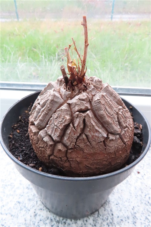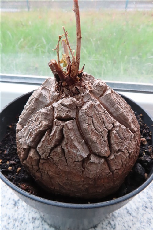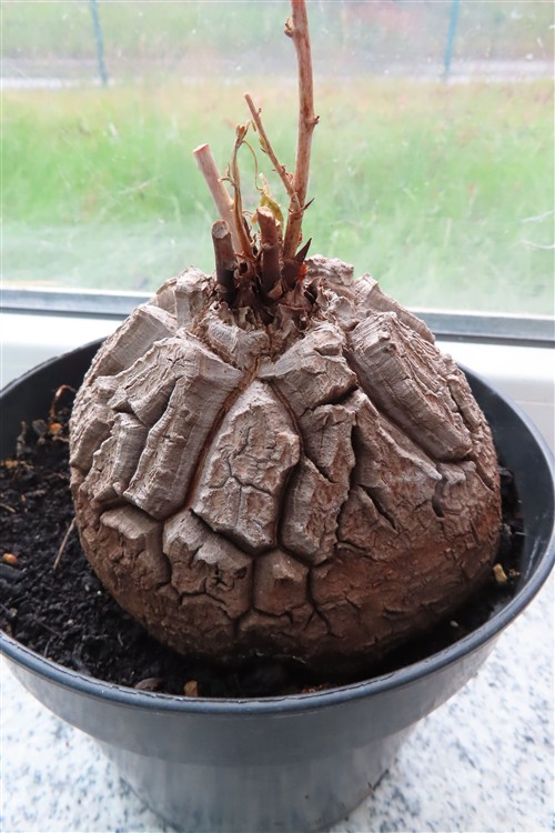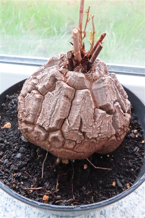 Die Pflanze Dioscorea elephantipes, auch Schildkrötenpflanze genannt, ist eine sukkulente Caudexpflanze aus Südafrika. Sie ist für ihre auffällige, holzige Knolle (Caudex) bekannt, die bei älteren Exemplaren an den Panzer einer Schildkröte erinnert. Als Zimmerpflanze ist sie aufgrund ihres einzigartigen Aussehens und ihrer Anspruchslosigkeit bei Sammlern sehr beliebt.