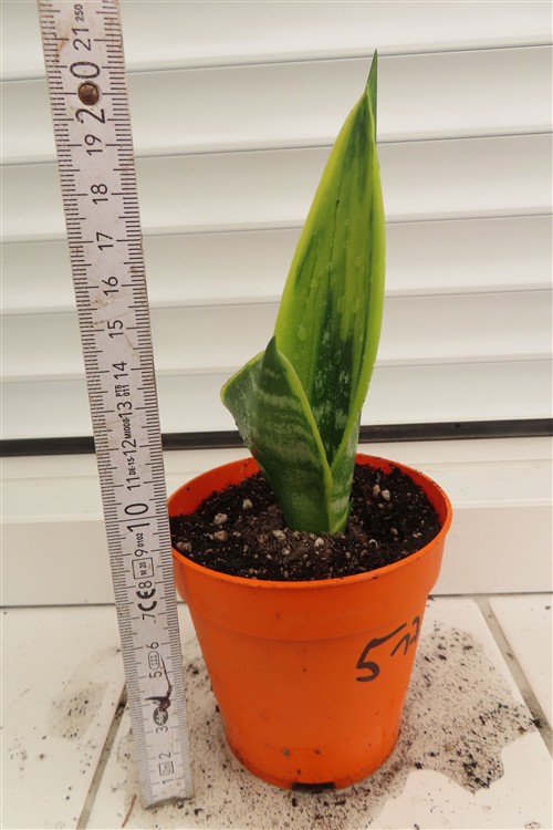 Die Sansevieria trifasciata Golden Flame, auch als Bogenhanf oder Schwiegermutterzunge bekannt, ist eine sehr pflegeleichte Zimmerpflanze mit attraktiven, goldgelb geflammten Blättern. Sie eignet sich hervorragend für Anfänger und verbessert das Raumklima.