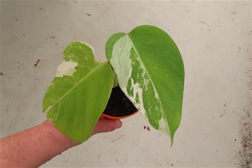 Die Monstera Deliciosa Variegata ist eine begehrte Zimmerpflanze, die sich durch ihre einzigartige, panaschierte (gescheckte) Blattfärbung in Weiß und Grün auszeichnet. Die Musterung ist das Ergebnis einer genetischen Mutation und bei jedem Blatt anders, was die Pflanze zu einem begehrten Sammlerstück macht.