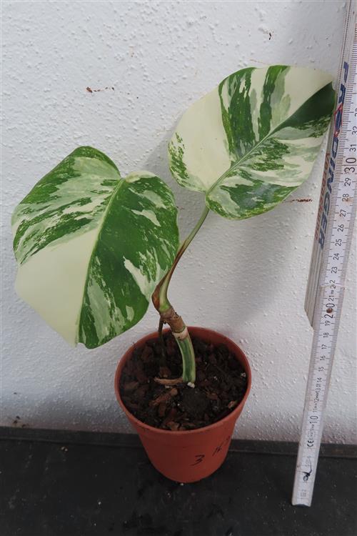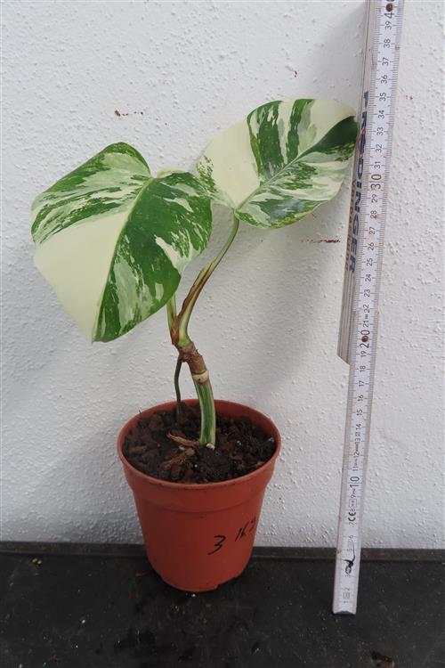 Die Monstera Deliciosa Variegata ist eine begehrte Zimmerpflanze, die sich durch ihre einzigartige, panaschierte (gescheckte) Blattfärbung in Weiß und Grün auszeichnet. Die Musterung ist das Ergebnis einer genetischen Mutation und bei jedem Blatt anders, was die Pflanze zu einem begehrten Sammlerstück macht.