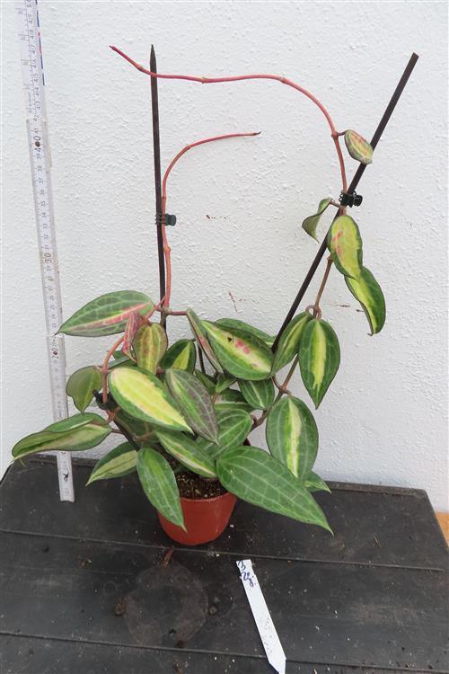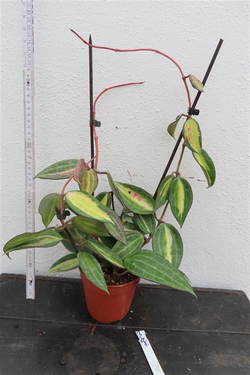 Die Pflege deiner Hoya macrophylla Pot of Gold ist einfach: Stelle sie an einen hellen Platz, aber ohne direkte Sonne, und gieße nur, wenn die Erde zwischen den Wassergaben leicht angetrocknet ist, um Staunässe zu vermeiden. Von März bis Oktober kannst du sie monatlich mit einem Flüssigdünger versorgen. Im Winter sollte die Pflanze kühler stehen (10-17 °C) und weniger Wasser bekommen.