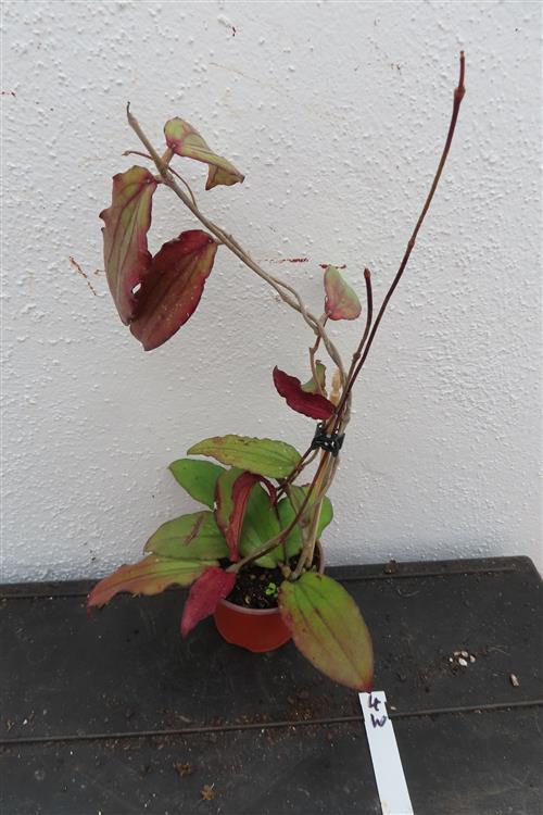 Blüte : gelblich. Die Hoya erythrina, auch bekannt als Wachsblume, ist eine exotische Schlingpflanze, die in Vietnam, Thailand und Malaysia beheimatet ist. Sie ist bei Pflanzenliebhabern aufgrund ihrer schönen, geäderten Blätter, die sich bei viel Licht rötlich verfärben, und ihrer duftenden Blüten beliebt. Die Pflanze eignet sich gut für Ampeln oder als Kletterpflanze an einer Stütze.