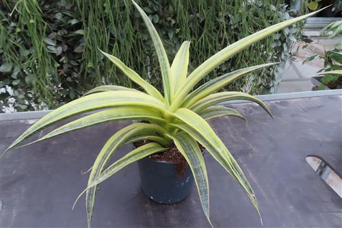 Die Sansevieria Siam Gold ist eine sehr selten angebotene dekorative, pflegeleichte Zimmerpflanze, die für ihre auffälligen, goldgelb panaschierten Blätter bekannt ist. Die Pflege der Sansevieria Siam Gold ist sehr einfach: Sie bevorzugt einen hellen Standort mit viel Licht, kann aber auch im Halbschatten gedeihen. Gießen Sie sie mäßig, alle zwei Wochen, wobei die Erde zwischen den Gießvorgängen gut abtrocknen sollte, um Staunässe zu vermeiden. Vermeiden Sie Zugluft und Temperaturen unter 15 °C. Düngen Sie nur sparsam im Frühling und Sommer.