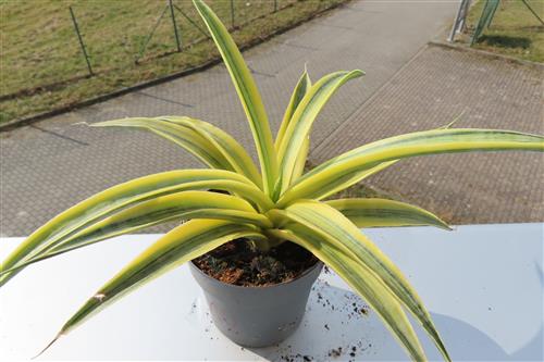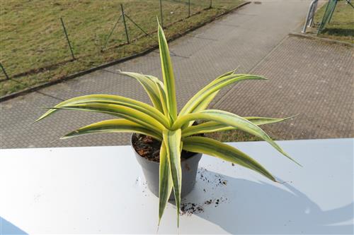 Die Sansevieria Siam Gold ist eine sehr selten angebotene dekorative, pflegeleichte Zimmerpflanze, die für ihre auffälligen, goldgelb panaschierten Blätter bekannt ist. Die Pflege der Sansevieria Siam Gold ist sehr einfach: Sie bevorzugt einen hellen Standort mit viel Licht, kann aber auch im Halbschatten gedeihen. Gießen Sie sie mäßig, alle zwei Wochen, wobei die Erde zwischen den Gießvorgängen gut abtrocknen sollte, um Staunässe zu vermeiden. Vermeiden Sie Zugluft und Temperaturen unter 15 °C. Düngen Sie nur sparsam im Frühling und Sommer.