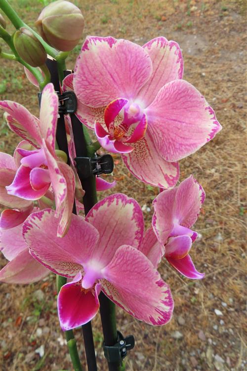 Phalaenopsis, auch als Schmetterlings- oder Nachtfalterorchidee bekannt, ist die beliebteste Orchideengattung und eine der meistverkauften blühenden Zimmerpflanzen weltweit. Eine Phalaenopsis benötigt einen hellen Standort ohne direkte Mittagssonne, mäßig feuchte Bedingungen (am besten durch Tauchen) und Zimmertemperatur. Nach der Blüte den Stiel über dem dritten Auge zurückschneiden oder nur trockene Teile entfernen.