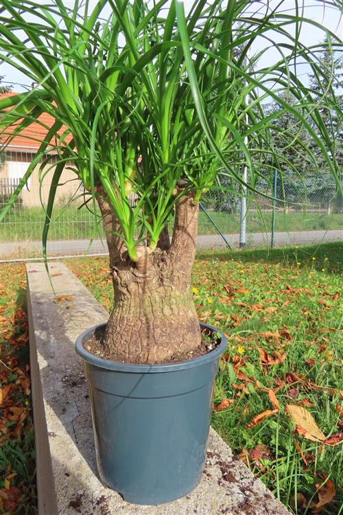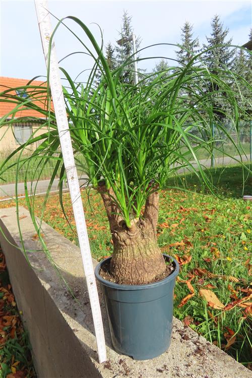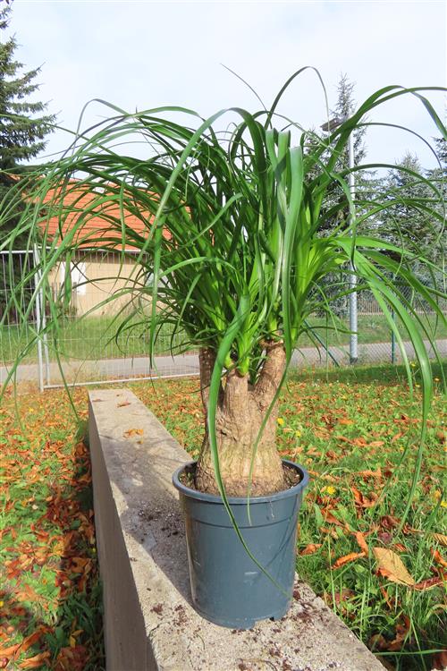 Die Pflege von Beaucarnea recurvata (Elefantenfuß) ist einfach: Stellen Sie die Pflanze an einen hellen Standort mit gefiltertem, nicht direktem Sonnenlicht und gießen Sie sie nur, wenn der Wurzelballen trocken ist, da sie Wasser im Stamm speichert und empfindlich auf Staunässe reagiert. Die Erde sollte locker und gut durchlässig sein, beispielsweise Kakteen- oder Palmenerde. Düngen Sie nur einmal im Frühling und einmal im Sommer mit Kakteendünger und topfen Sie die Pflanze nur alle drei bis fünf Jahre um.