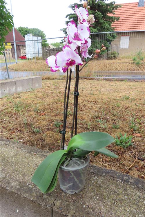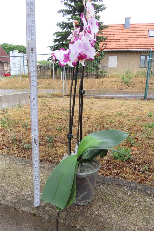 Phalaenopsis, auch als Schmetterlings- oder Nachtfalterorchidee bekannt, ist die beliebteste Orchideengattung und eine der meistverkauften blühenden Zimmerpflanzen weltweit. Eine Phalaenopsis benötigt einen hellen Standort ohne direkte Mittagssonne, mäßig feuchte Bedingungen (am besten durch Tauchen) und Zimmertemperatur. Nach der Blüte den Stiel über dem dritten Auge zurückschneiden oder nur trockene Teile entfernen.