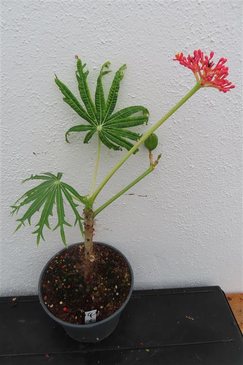 Die Jatropha multifida (Rich Beauty), auch bekannt als Korallenbaum, ist eine auffällige und pflegeleichte Zimmer- und Kübelpflanze, die aus Mexiko und der Karibik stammt. Sie gehört zur Familie der Wolfsmilchgewächse (Euphorbiaceae).