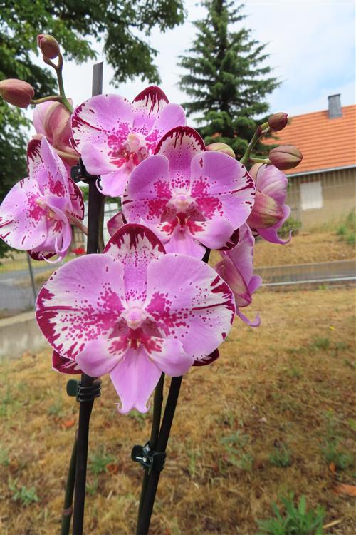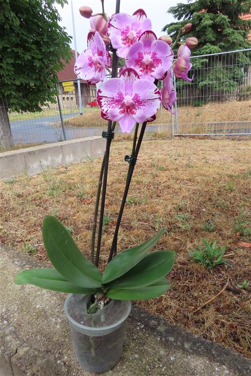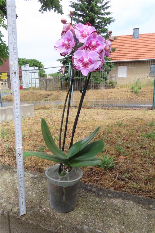 Phalaenopsis, auch als Schmetterlings- oder Nachtfalterorchidee bekannt, ist die beliebteste Orchideengattung und eine der meistverkauften blühenden Zimmerpflanzen weltweit. Eine Phalaenopsis benötigt einen hellen Standort ohne direkte Mittagssonne, mäßig feuchte Bedingungen (am besten durch Tauchen) und Zimmertemperatur. Nach der Blüte den Stiel über dem dritten Auge zurückschneiden oder nur trockene Teile entfernen.