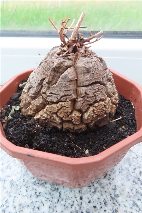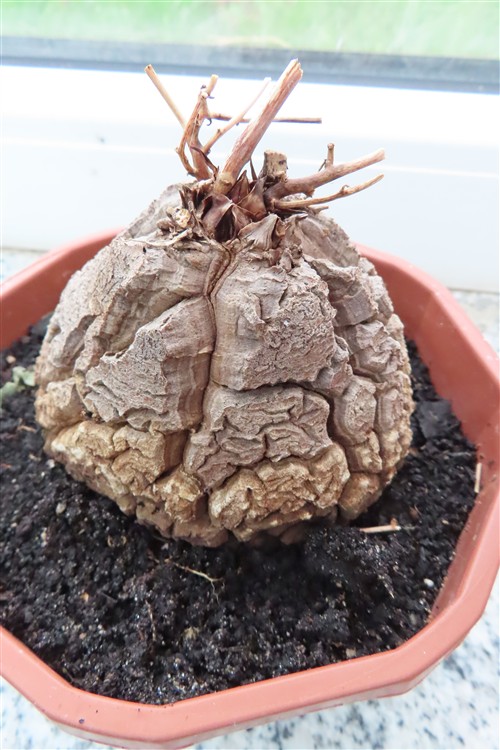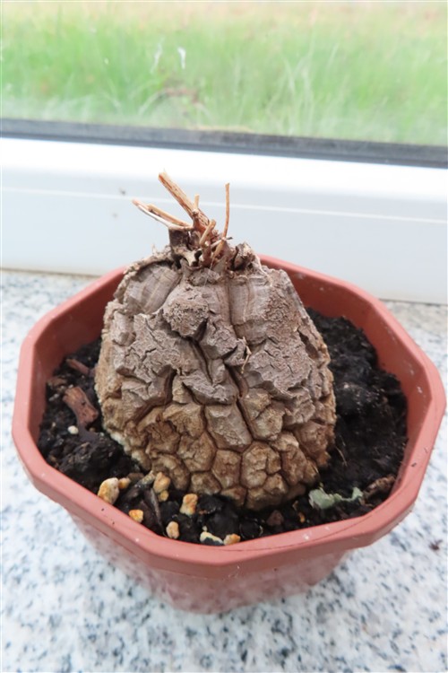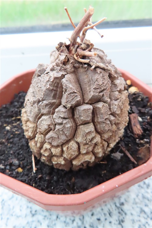 Die Pflanze Dioscorea elephantipes, auch Schildkrötenpflanze genannt, ist eine sukkulente Caudexpflanze aus Südafrika. Sie ist für ihre auffällige, holzige Knolle (Caudex) bekannt, die bei älteren Exemplaren an den Panzer einer Schildkröte erinnert. Als Zimmerpflanze ist sie aufgrund ihres einzigartigen Aussehens und ihrer Anspruchslosigkeit bei Sammlern sehr beliebt.