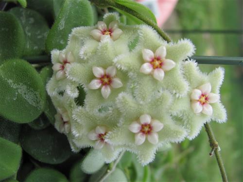 Die Hoya Mathilde ist eine beliebte Zimmerpflanze, die für ihre attraktiven, silbrig gesprenkelten Blätter und die zarten Blüten bekannt ist. Als Züchtung ist sie ein Hybrid aus Hoya carnosa und Hoya serpens. Sie wächst kompakt und eignet sich daher auch für kleinere Wohnräume.