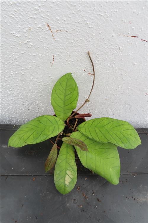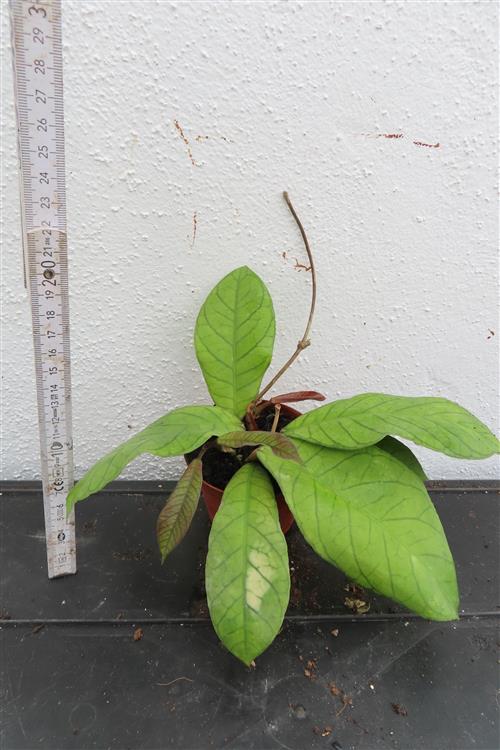 Hoya sp. Sabah (EPC 961) ist eine seltene, noch unbeschriebene Porzellanblume aus den Regenwäldern von Sabah, Malaysia. Sie ist für ihre glänzenden, länglichen Blätter mit auffälliger Nervatur bekannt und wächst kompakt, was sie zu einem begehrten Sammlerstück macht. Die Pflanze ist relativ pflegeleicht, benötigt einen hellen Standort ohne direkte Mittagssonne und sollte nur gegossen werden, wenn das Substrat angetrocknet ist.