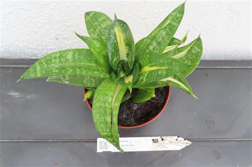 Die Sansevieria Curly Spiral Star ist eine kompakte und pflegeleichte Bogenhanf-Sorte, die für ihre spiralförmig wachsenden Blätter bekannt ist. Die Blätter sind meist dunkelgrün mit hellgrünen bis gelblichen Sprenkeln und Rändern.