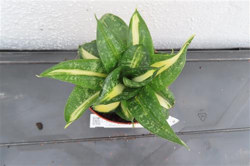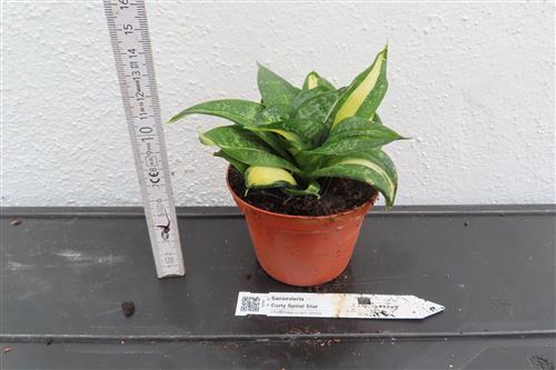 Die Sansevieria Curly Spiral Star ist eine kompakte und pflegeleichte Bogenhanf-Sorte, die für ihre spiralförmig wachsenden Blätter bekannt ist. Die Blätter sind meist dunkelgrün mit hellgrünen bis gelblichen Sprenkeln und Rändern.