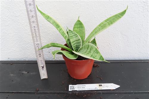 Die Unkaputtbare: Sansevieria Silver Star für ein besseres Raumklima. Die Silver Star ist eine robuste Schönheit und ein wahrer Champion in Sachen Anpassungsfähigkeit. Dank ihrer sukkulenten Eigenschaften speichert sie Wasser in ihren Blättern und macht sie zu einem der unkompliziertesten Mitbewohner überhaupt. Ihre einzigartige silbrig-graue Blattfärbung sorgt nicht nur für ein optisches Highlight, sondern symbolisiert auch ihre Stärke.