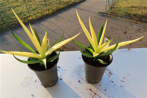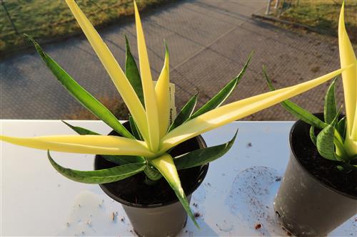 Die Sansevieria Comet Chrysantha Lemon ist eine besonders pflegeleichte Sukkulente, die durch ihre zitronengelben und hellgrünen Farbtöne besticht.