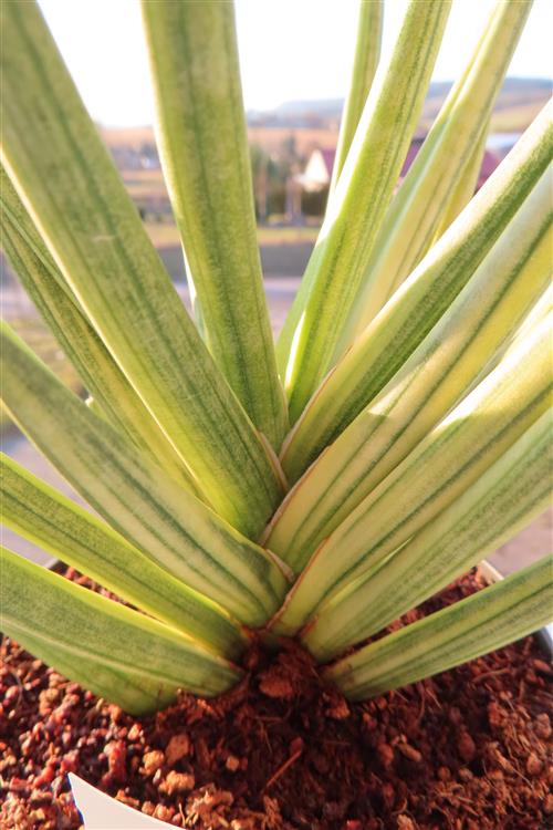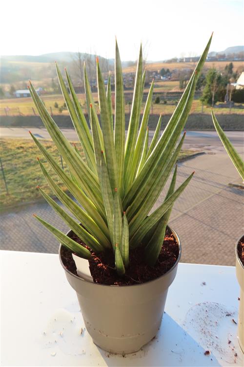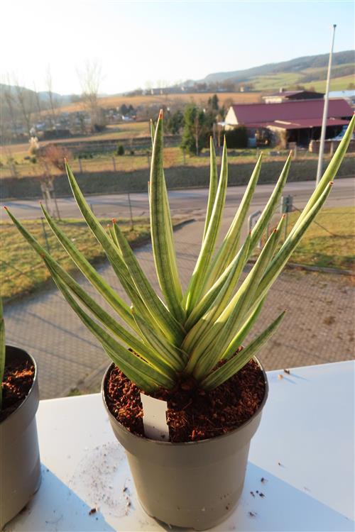 Die Sansevieria francisii Yellow Variegata ist einfach in der Pflege. Sie benötigt viel Licht (aber keine pralle Mittagssonne), um die Variegation zu erhalten, ein gut durchlässiges Substrat (Kakteen-/Sukkulentenerde) und wenig Wasser (nur gießen, wenn die Erde trocken ist), um Wurzelfäule zu vermeiden. Halten Sie sie warm (mind. 15°C) und zugfrei. Düngen Sie im Frühling/Sommer sparsam.