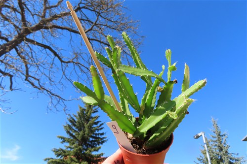 Lepismium monacanthum (auch bekannt als Pfeiffera monacantha oder Rhipsalis monacantha) ist ein epiphytischer Kaktus, der ursprünglich aus Bolivien und Argentinien stammt. Er ist bekannt für seine zweikantigen, abgeflachten Triebe, die bis zu 3 Meter lang werden können, sowie für seine leuchtend orangen Blüten und Beeren, die sich im Sommer bilden. Die Pflanze wächst in Tropenwäldern an Bäumen und benötigt daher ein warmes, feuchtes Klima sowie helles Licht ohne direkte Sonne.