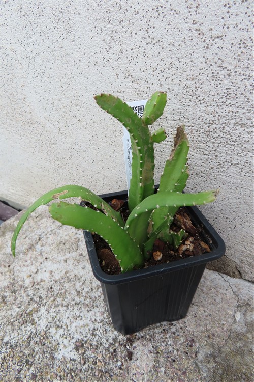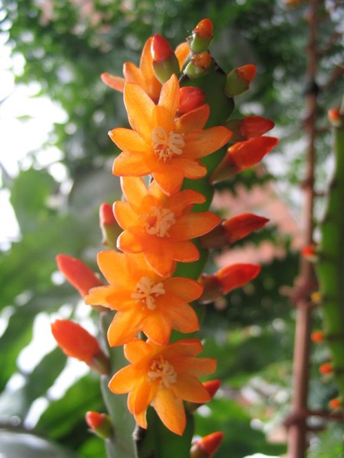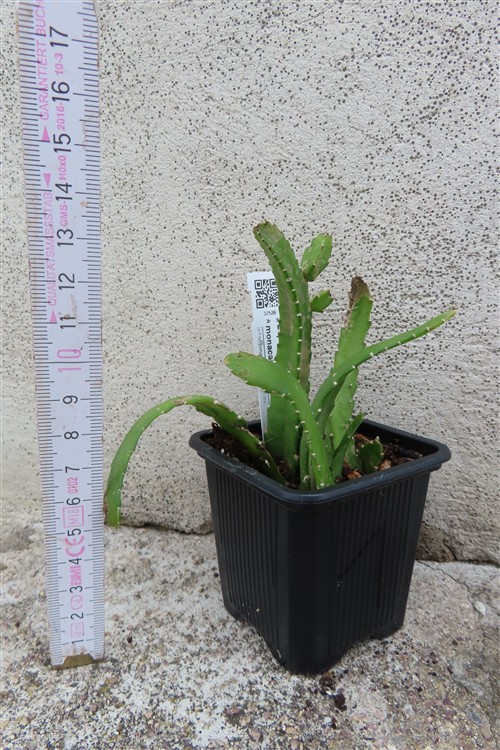Lepismium monacanthum (auch bekannt als Pfeiffera monacantha oder Rhipsalis monacantha) ist ein epiphytischer Kaktus, der ursprünglich aus Bolivien und Argentinien stammt. Er ist bekannt für seine zweikantigen, abgeflachten Triebe, die bis zu 3 Meter lang werden können, sowie für seine leuchtend orangen Blüten und Beeren, die sich im Sommer bilden. Die Pflanze wächst in Tropenwäldern an Bäumen und benötigt daher ein warmes, feuchtes Klima sowie helles Licht ohne direkte Sonne.