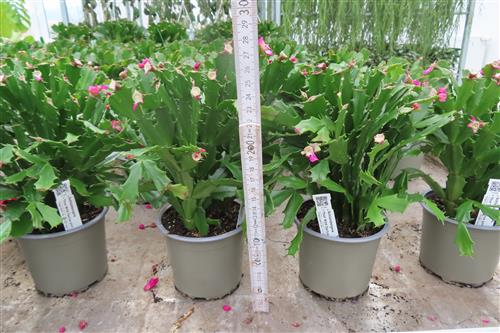 ‚Schlumbergera Wild Thor‘ eine moderne, robuste Züchtung des Weihnachtskaktus, die mit ihren gezackten Blättern und symmetrischen Blüten in leuchtenden Farben auffällt.