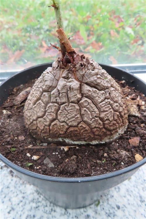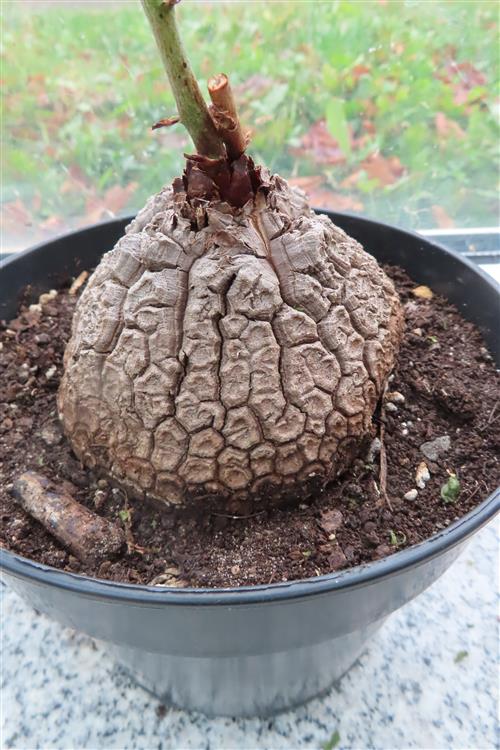 Die Pflanze Dioscorea elephantipes, auch Schildkrötenpflanze genannt, ist eine sukkulente Caudexpflanze aus Südafrika. Sie ist für ihre auffällige, holzige Knolle (Caudex) bekannt, die bei älteren Exemplaren an den Panzer einer Schildkröte erinnert. Als Zimmerpflanze ist sie aufgrund ihres einzigartigen Aussehens und ihrer Anspruchslosigkeit bei Sammlern sehr beliebt.
